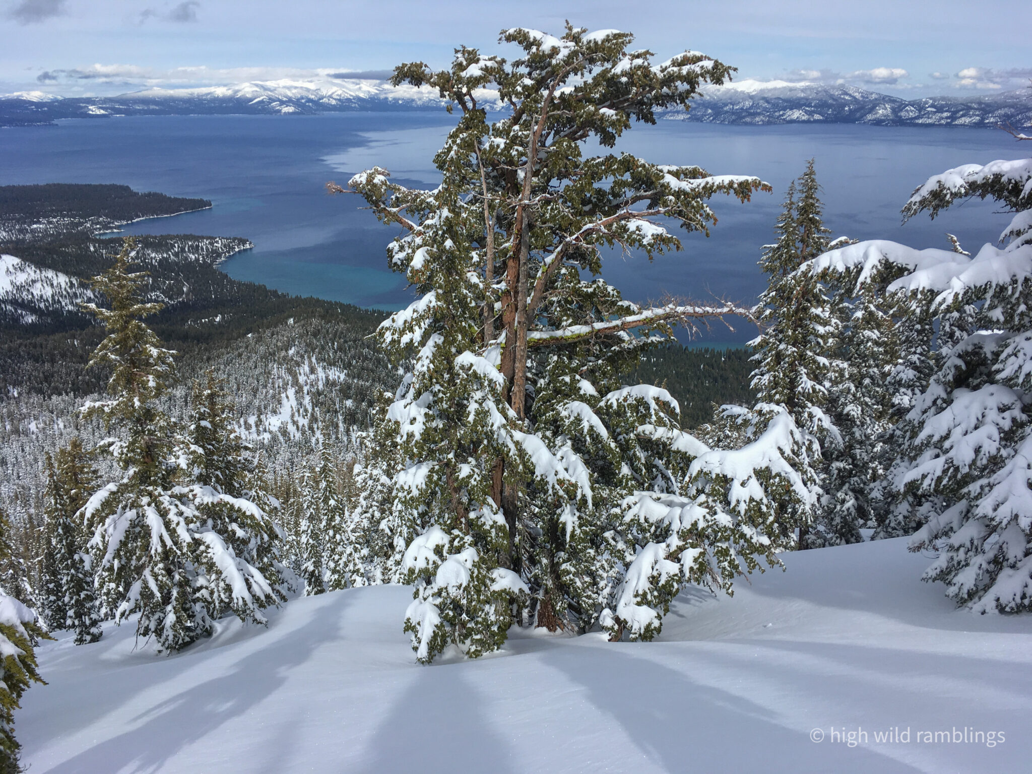 The Sierra Nevada is the longest tallest wildest continuous mountain range in the continental US, stretched out along the coast for over three hundred miles, square to the jet stream, it’s orographics wring out the rivers of tropical moisture sent our way. It’s flanks are home to the most iconic conifer forests, the biggest sheer cliffs, the tallest peak, the deepest valley. Tahoe is the saphire gem stone in the navel of this voluptuous range. My ski tracks are just so many sparkly crystals hanging briefly, dancing in the halo around her.