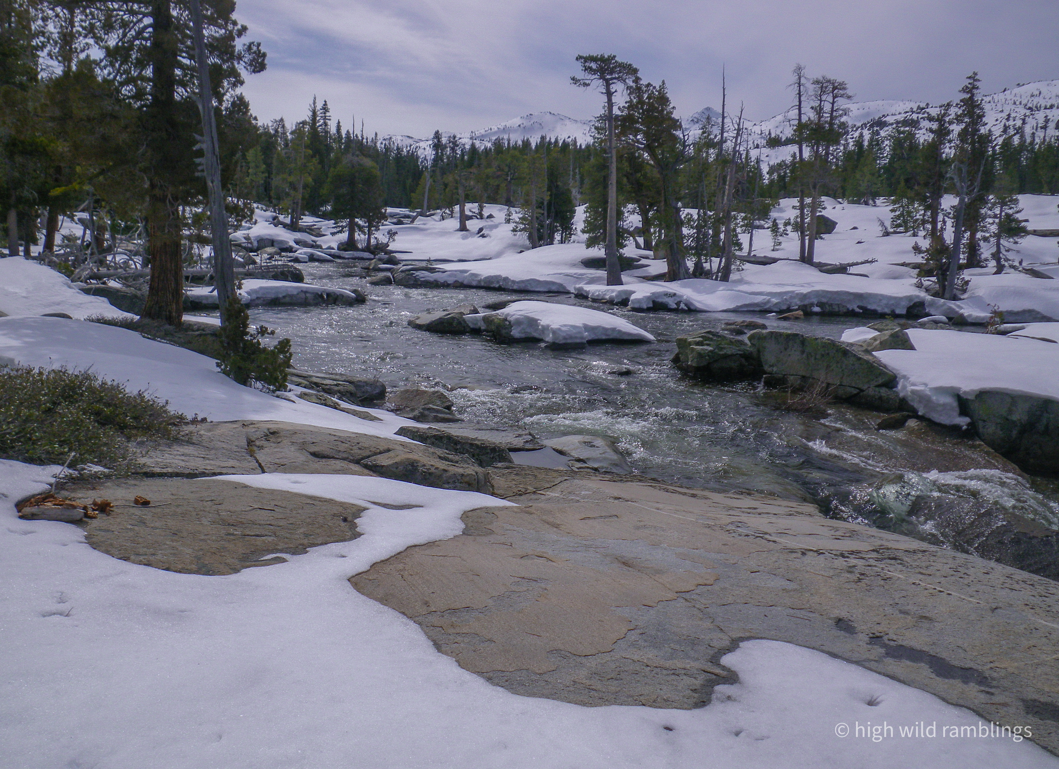 It was conceivable to try to swim across the river in the ponds upstream but the water would be butt cold and with skis it would be a clusterfk, I’d need a drybag, etc. And then of course, I’d have to cross again on the way back. And it would likely take sufficient extra time to result in having to ski home in the dark. That all would feel like stubborn, self-serious siege tactics, making a pretense of my aims for connection. No. I would go if the mountain offered it up in a clean, unforced style, or come back at a better time, when it was in proper conditions, or not at all. This was personal, to participate in this great beauty, not for show or profit. This aesthetic helps keep me safe out here, keeps me right with the Rockbound locals. I try to honor that.