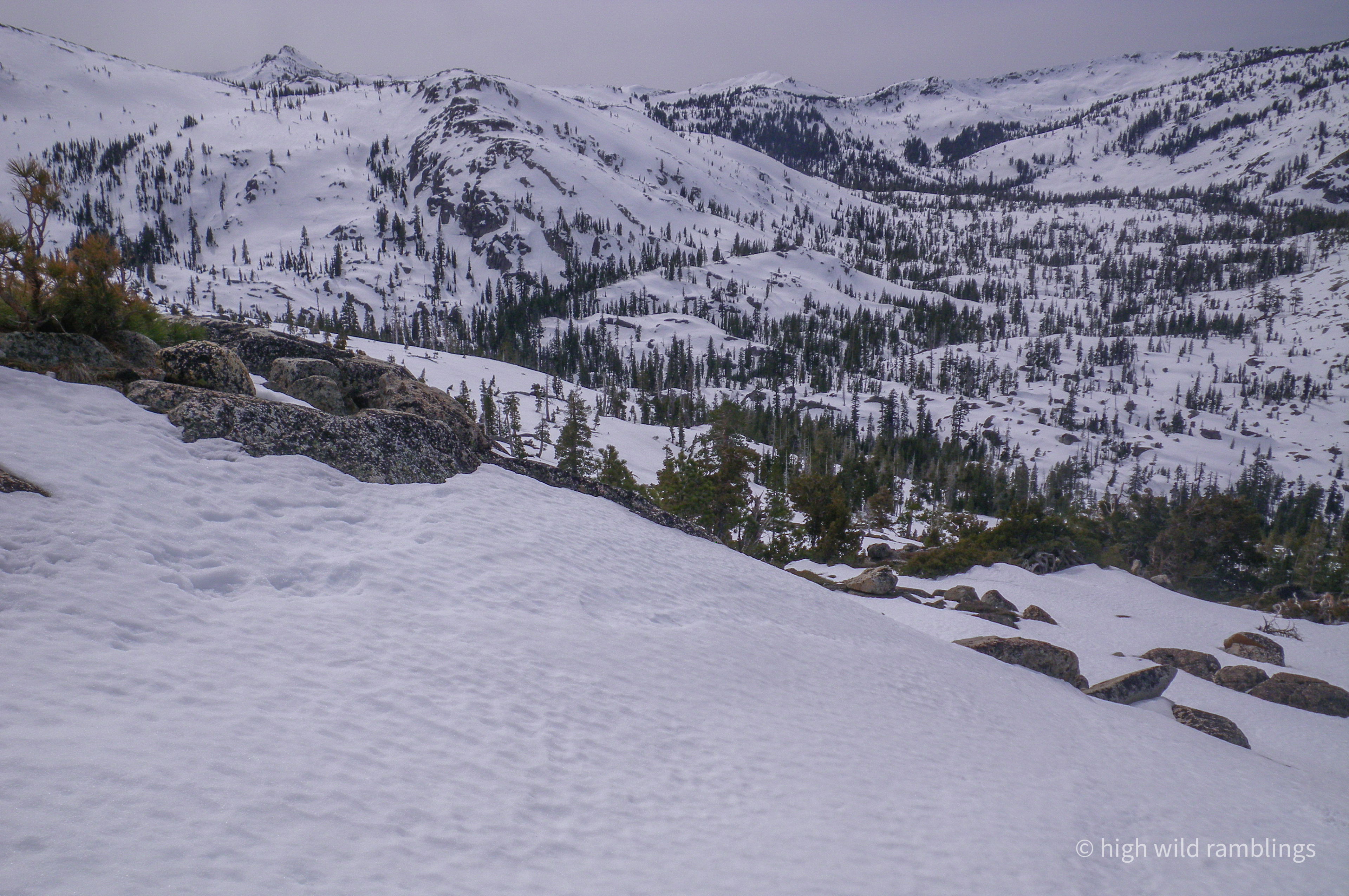I envisioned climbing this gentle valley, and then the low angle, lightly treed subridge that breaks to the skyline at upper right, which faces south and so will have the most solid base, with the best softened surface, a nice friendly looking way, conducive to my light weight tele gear and long day.
