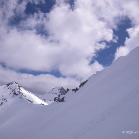 Surface refreeze nuggets turned up by our skiing, bounded and bounced down all around us, as we skied the moving surface. It was like confetti in our own personal ticker tape parade.