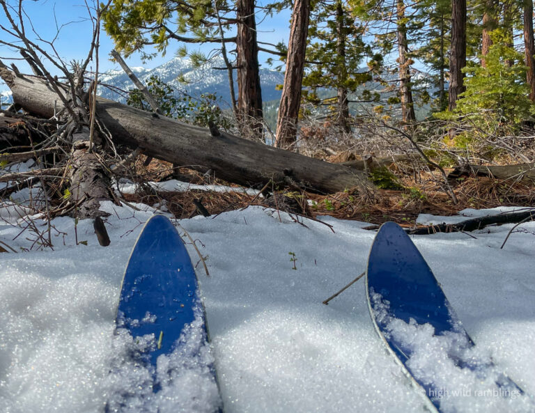Season’s last tour to the Lake? feeling kinda silly standing here on the beach on skis. But I did ski almost five miles today, almost all of it on snow, just a few inches of damp powder on bare ground.