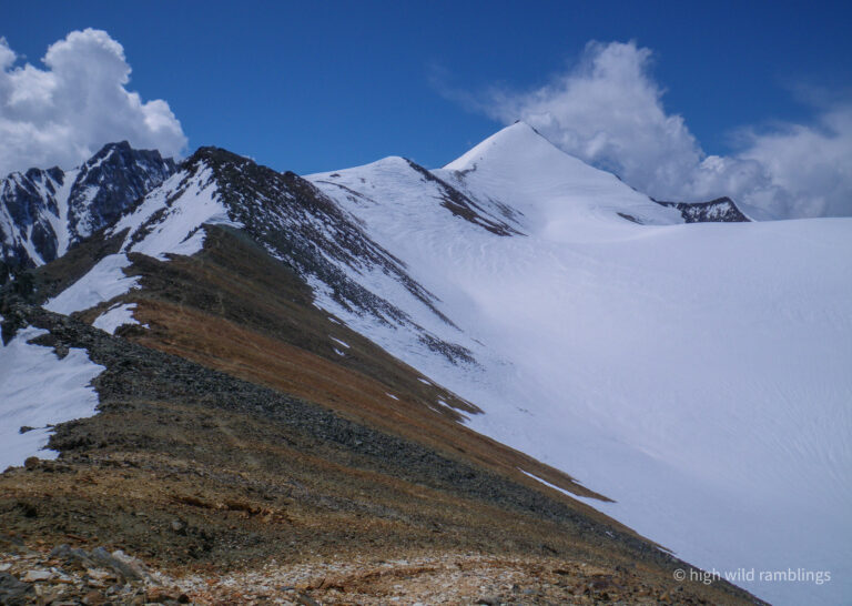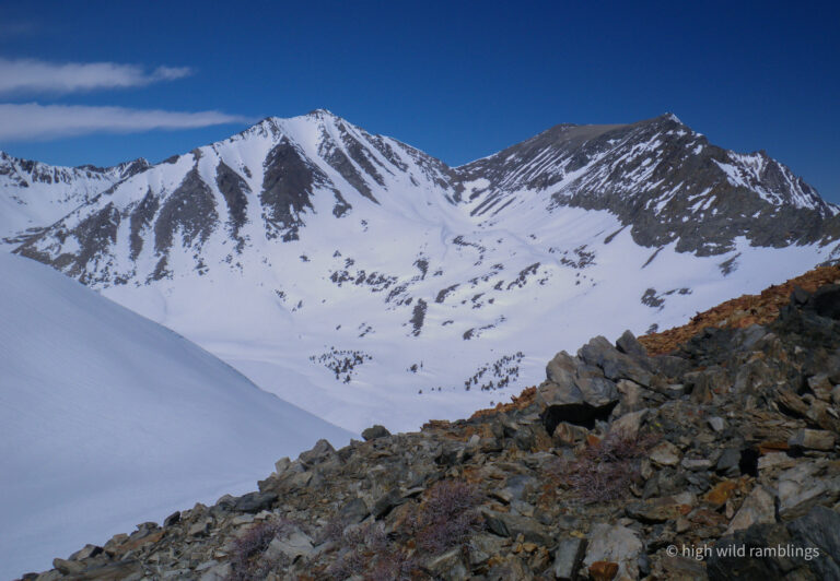 Skied the line at center, the most south facing snow I could find. I drool at all the beautiful gullies around here, but most all of it’s frozen hard and treacherous. I found some nicely softened snow in the due south though, and even managed to ski it before the clouds came in and it started refreezing. This high country is dramatic in so many ways.