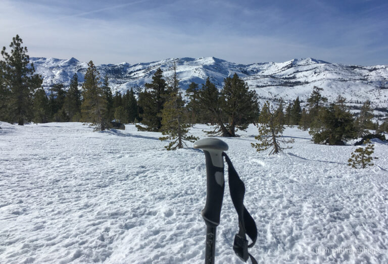 Skis are such an awesome tool, and side-hilling is one of the otherwise awkward things they make so easy. Now I just have to find some decent descent skiing to put it to good use. Haven’t seen any smooth surfaces so far. But I can hold out hope that the snow I can’t see on the other side of the Crest will be better, opting for what’s behind curtain number two, rather than what I can already see, you know how that goes. It’s often times easier to maintain hope in the absence of hard evidence.