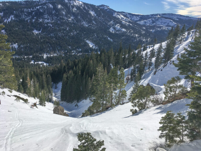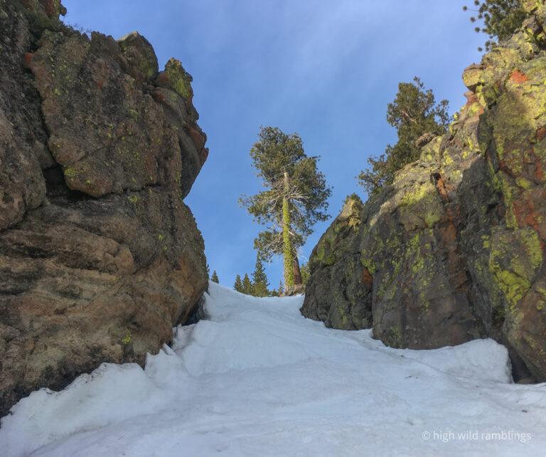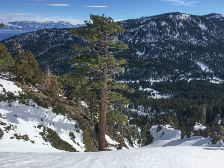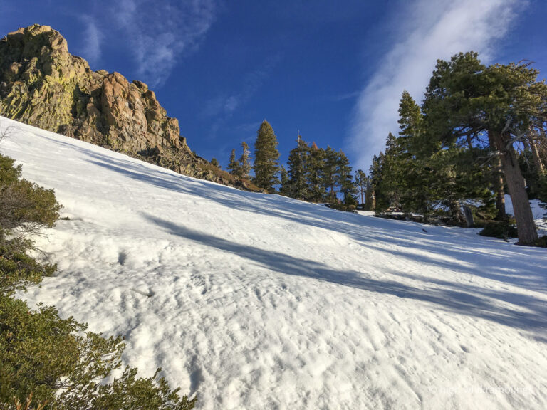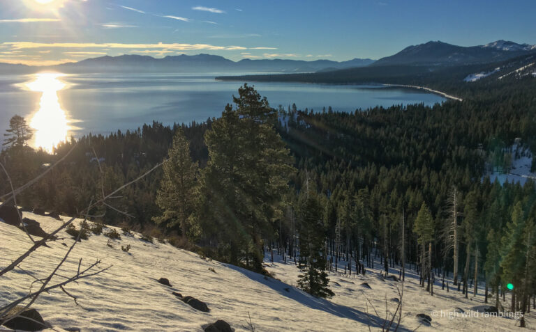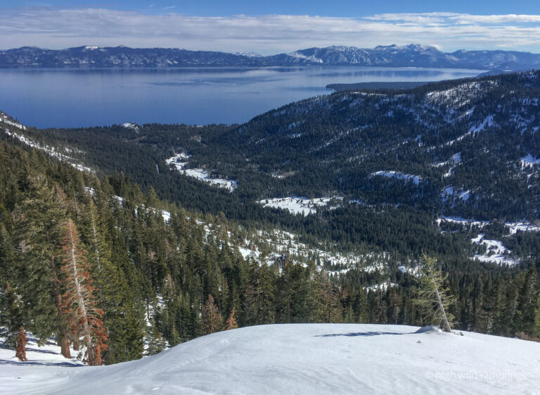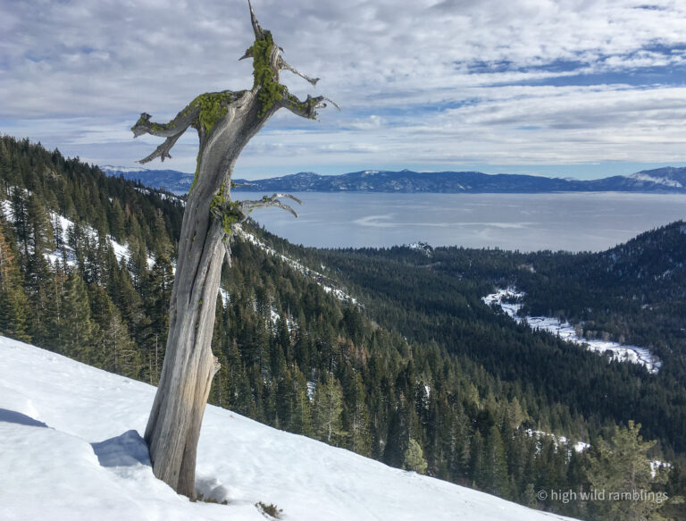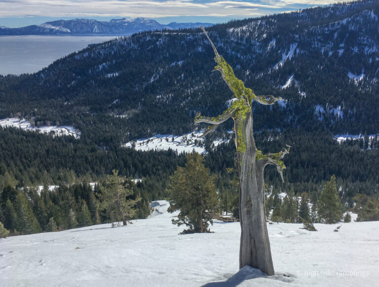 The reflection off the lake was so bright it cast a shadow in addition to the sun’s shadow, as I skinned up, putting a big wedge of light up through the shadow of my torso. I felt like a walking petroglyph man in a celestial solar alignment.