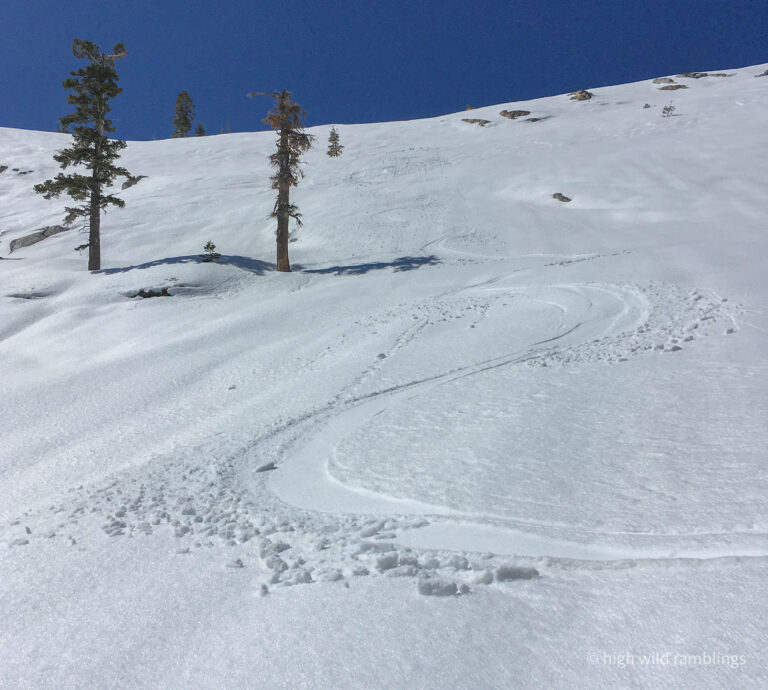 Couldn’t see the shiny firm snow from above, but I managed to work over and around it, to better snow below.