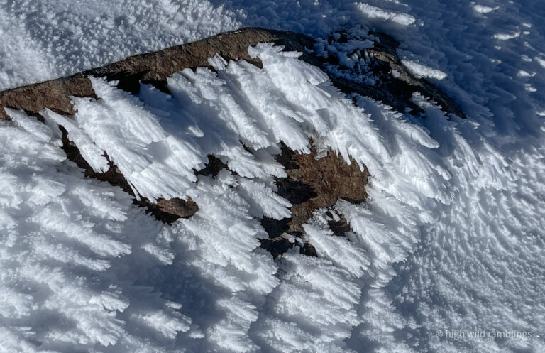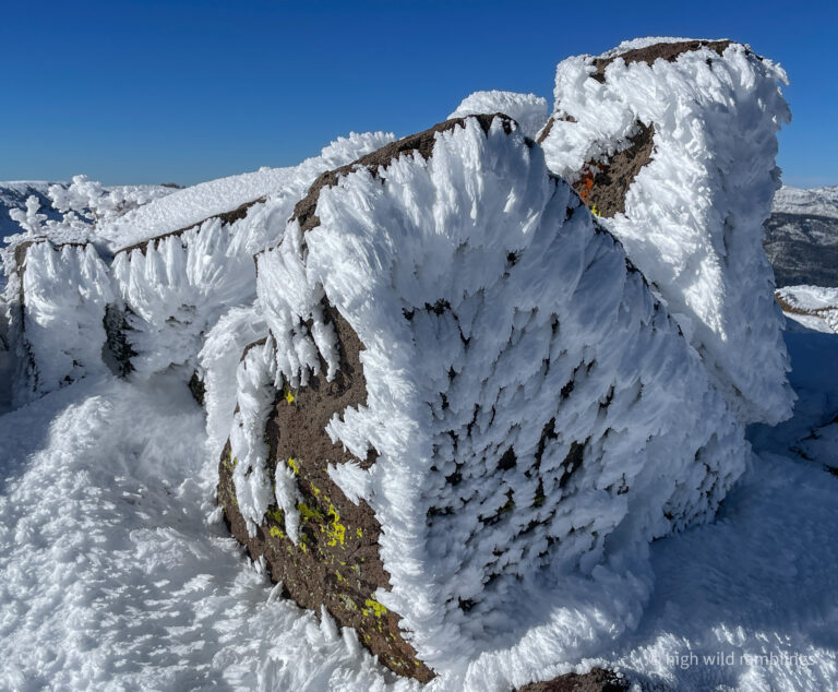 Rime ice forms when superchilled water droplets in low clouds or fog are rapidly frozen onto exposed windward surfaces, boldly growing directly into the wind-driven cooling and sculpting forces.