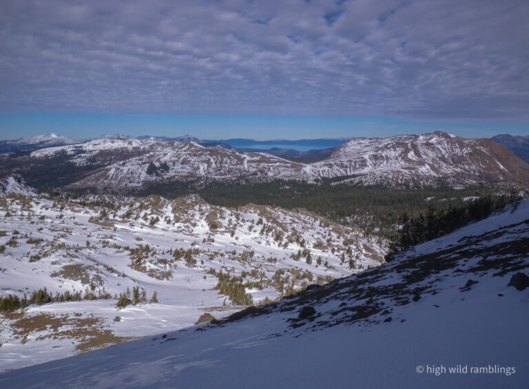 Then a series of eruptions sent lava flows following down the shallow drainages of this ancestral landscape, which then solidified harder than the surrounding old metamorphic country rock, so when the Sierra was then uplifted, the softer old ridge lines were worn away, leaving the more durable new volcanic rock in the old creek beds, to now stand as the ridgetops we see today. The terrain has ‘inverted topographically’, as geologists say.